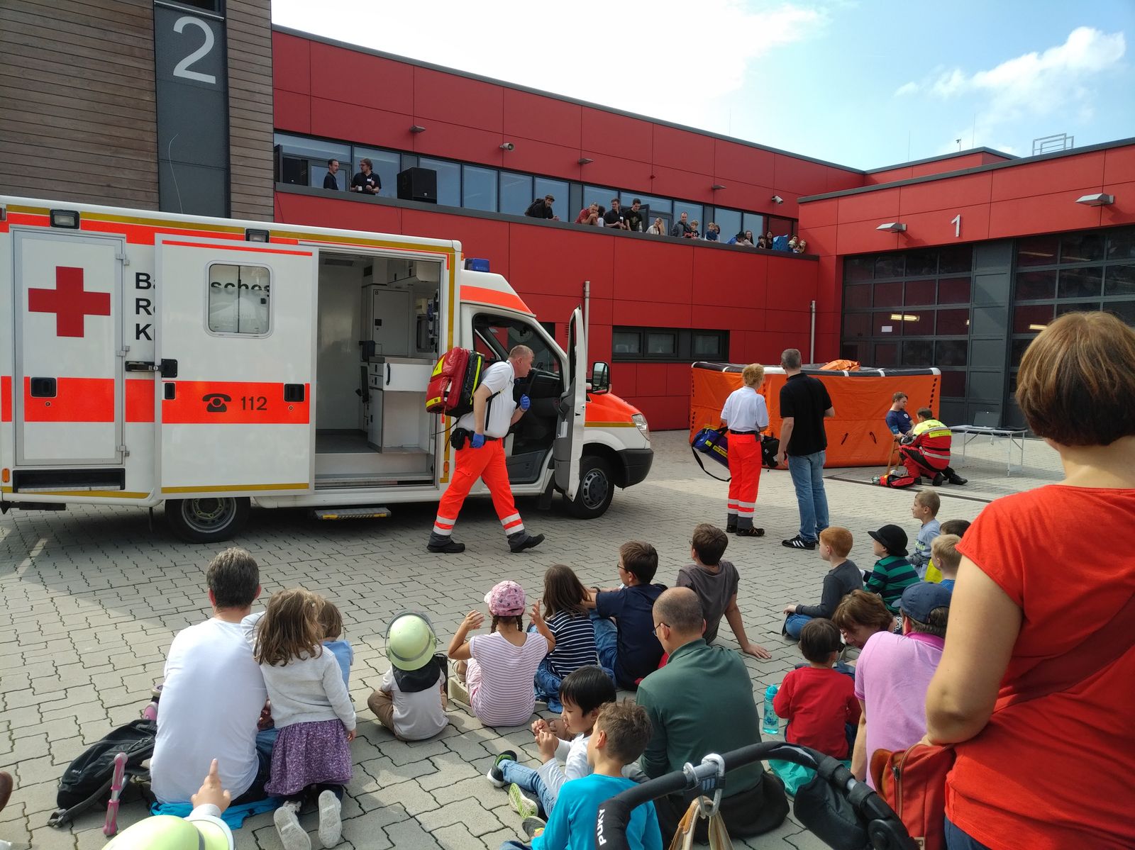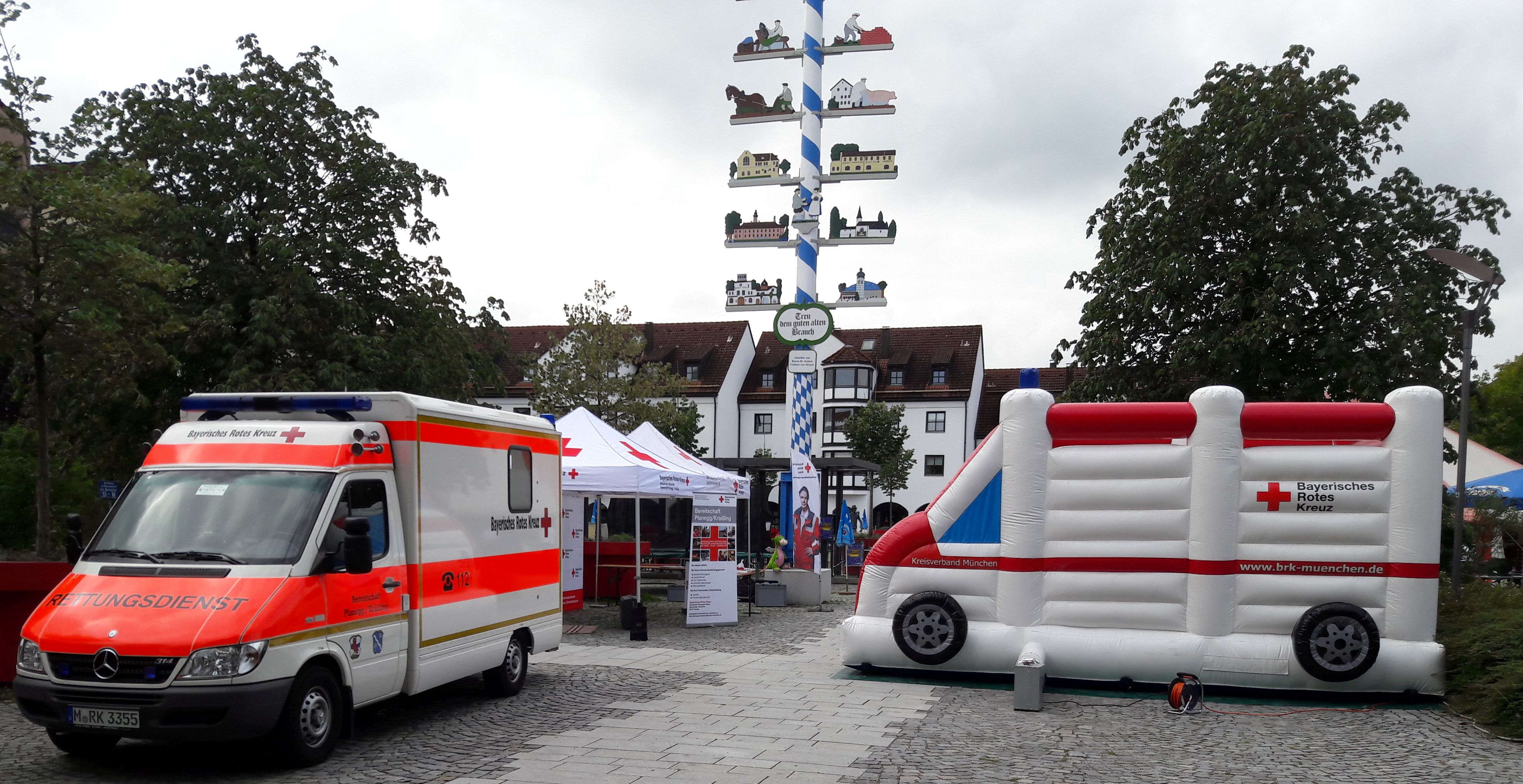 Das Münchner Rote Kreuz beteiligte sich mit einem Infostand, diversen Fahrzeugen und Einsatzmaterial, einer Erste-Hilfe-Station und Kinderschminken an der Veranstaltung.