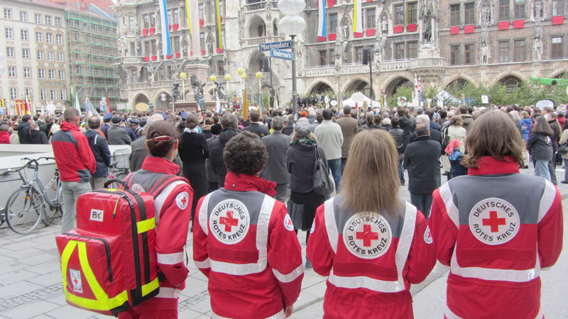Mit einem Festkonzert im Konzerthaus Berlin würdigte das DRK am 28. Mai das 150-jährige Bestehen des Roten Kreuzes. Die „Philharmonie der Nationen“ spielte Werke von Ludwig van Beethoven. Justus Frantz, Chefdirigent des Orchesters, trat als Solist des Klavierkonzerts auf. Dieter Holzapfel, der Vorsitzende des DRK-Präsidialrats, dirigierte das Konzert.