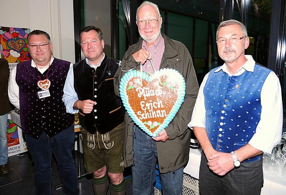 Bürgermeister Schmid dankte dem Jubilar für seine außerordentlichen Verdienste zum Wohle der Wiesnbesucher und überreichte ein großes Wiesnherz mit der…