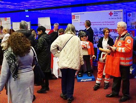 Mehr als 5.000 Besucher*innen kamen gestern in den Gasteig zur Münchner Freiwilligenmesse. Mehr als 80 Organisationen informierten über ehrenamtliche Engagementmöglichkeiten. Auch das Münchner Rote Kreuz war mit einem Infostand vertreten.