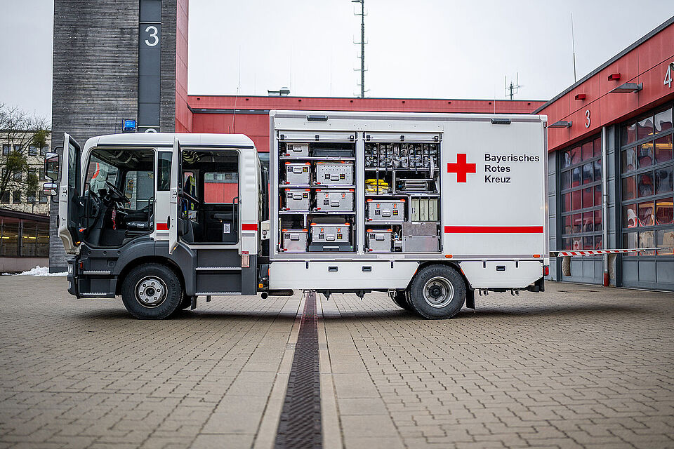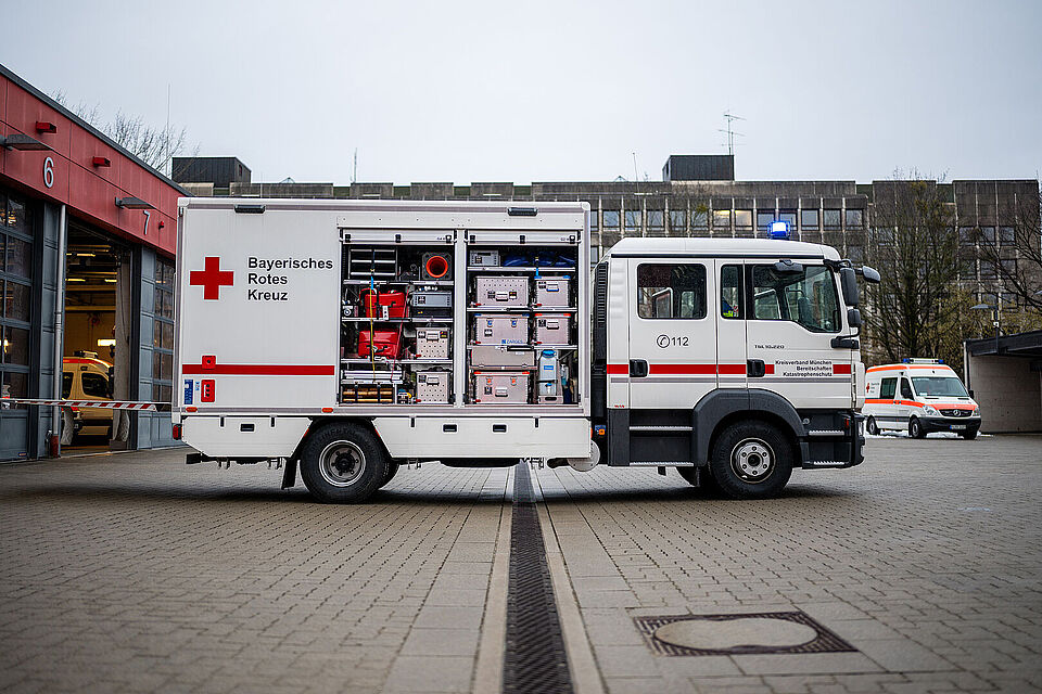 Das Fahrzeug dient als Backup für die baugleichen Fahrzeuge, welche in den beiden Rotkreuz-SEGn Behandlung involviert sind. Es kann im Katastrophenfall aber auch separat angefordert werden. Unser GW San wird jedoch regelmäßig für größere Sanitätsdienste (München Marathon, B2Run,...) benötigt. In ihm ist nämlich unter anderem die Unfallhilfsstelle verlastet. Insgesamt ist der GW San so ausgestattet, dass wir mind. 25 Patient*innen mit verschiedenen Erkrankungen oder Verletzungen vollumfänglich erstversorgen könnten.